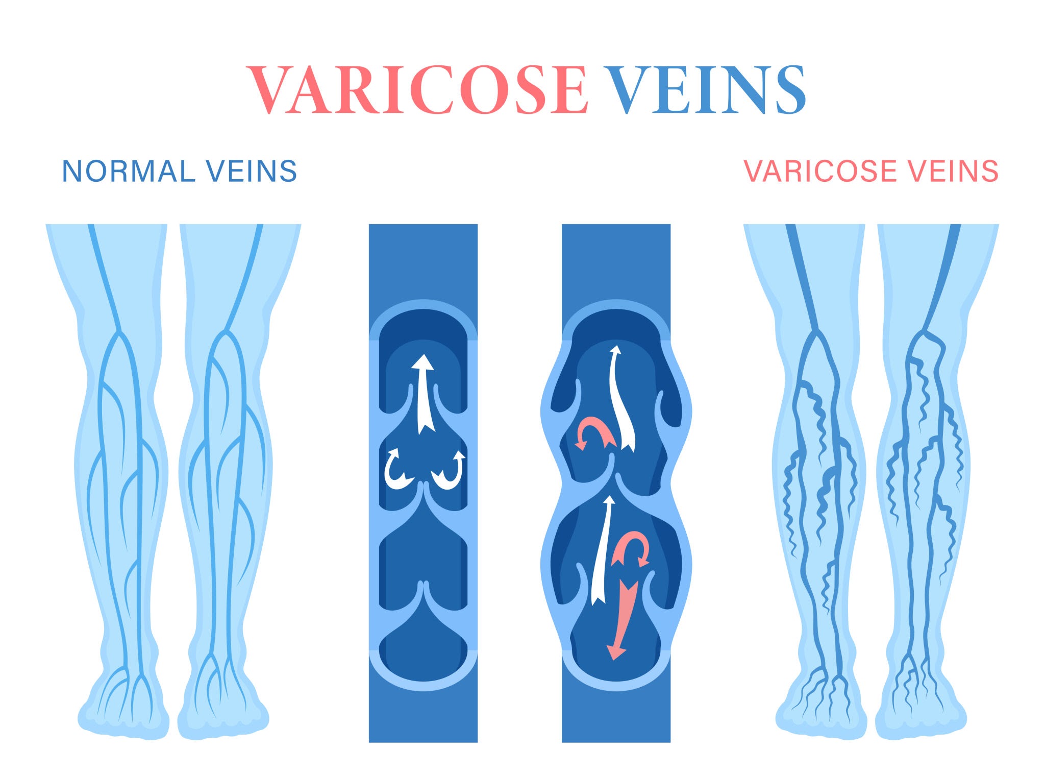 靜脈曲張(Varicose Veins)是一種慢性的血管退化疾病。正常情況下,腿部靜脈中的「瓣膜」像是一道單向門,防止血液受地心引力影響而倒流。
