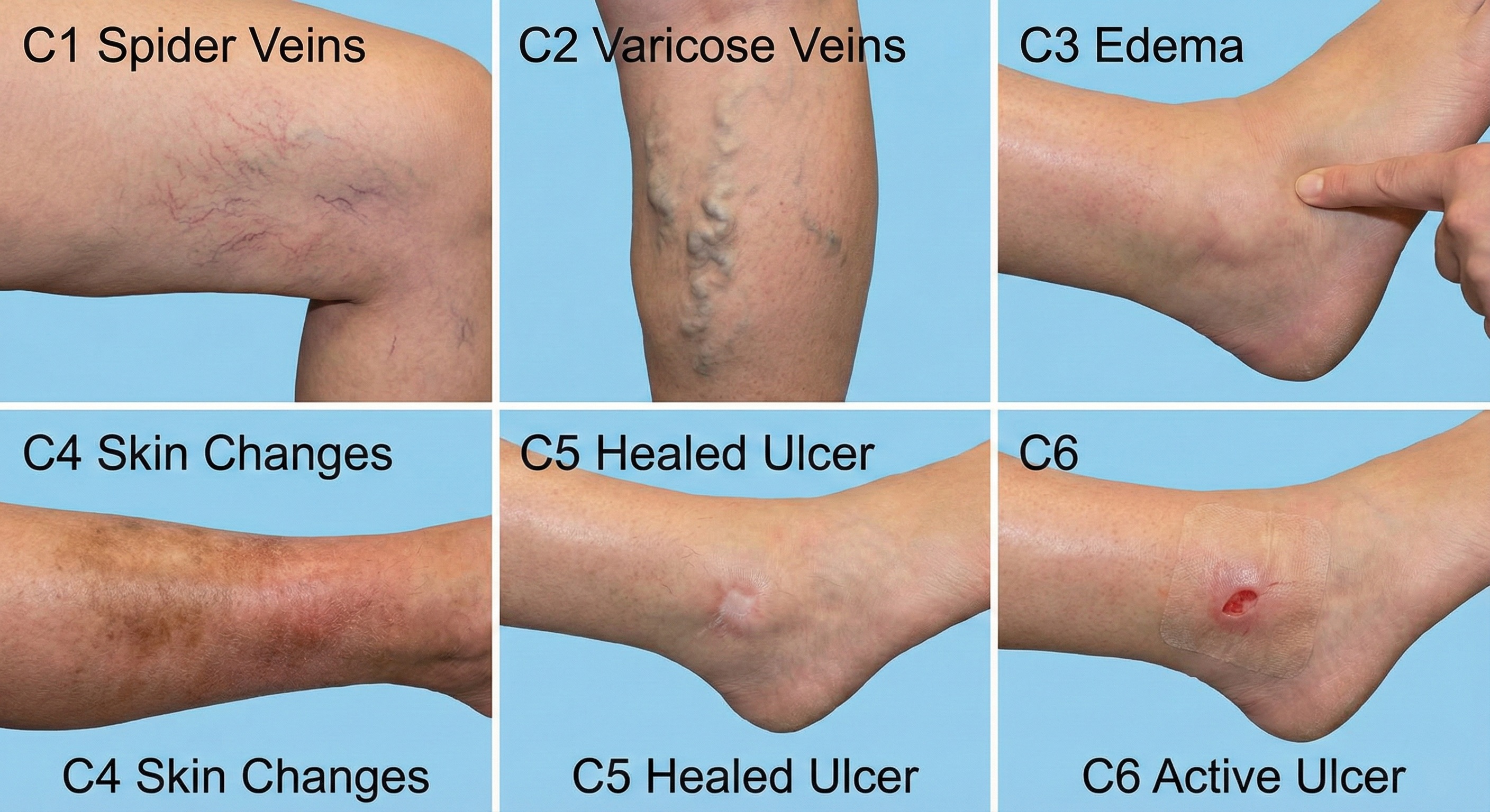 靜脈曲張分級表 (CEAP):從蜘蛛網狀血管到靜脈潰瘍的 6 階段
